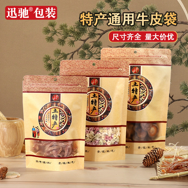 お土産のクラフト紙の袋の自封袋のしいたけの黒カビの食品の袋の通用する漢方薬の干物の包装袋の卸売り