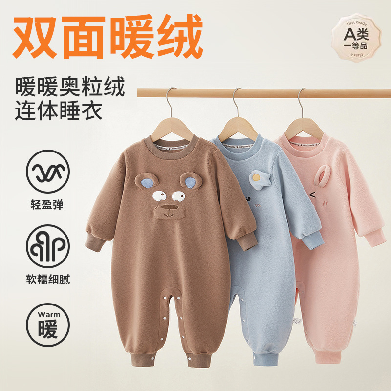 上宝麦德绒儿童连体睡衣秋冬防踢保暖加厚男女童宝宝家居服拉链款