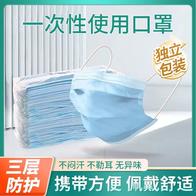 一次性口罩独立包装三层熔喷布透气防尘防护透气成人劳保工厂车间