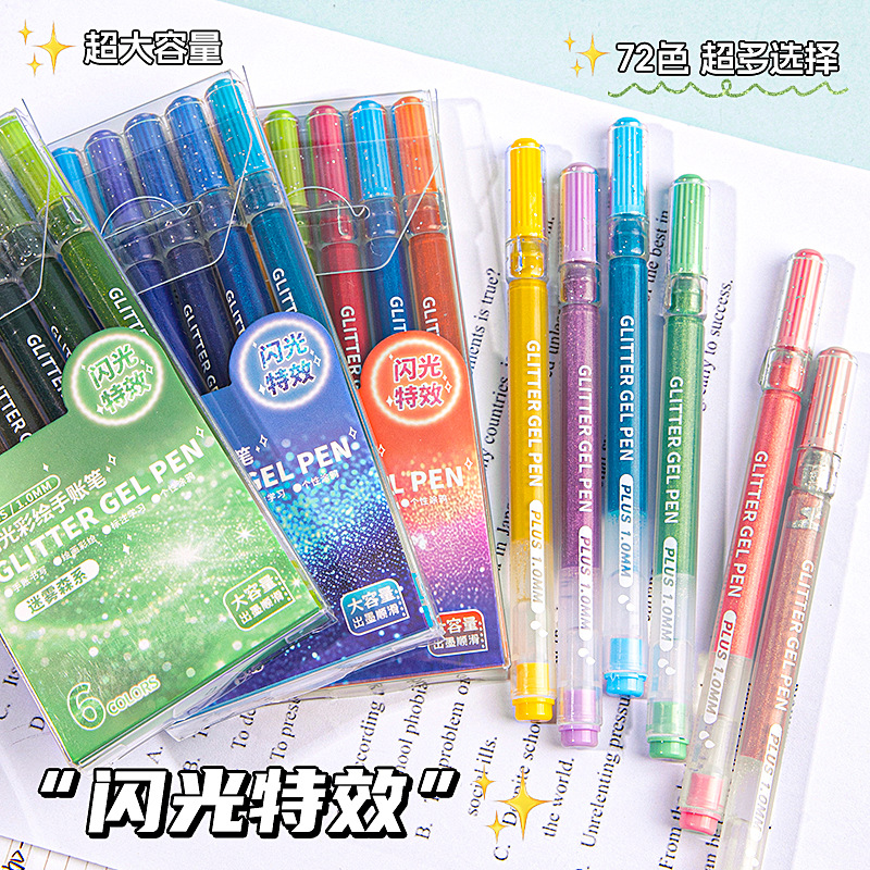 儿童闪光手账笔爆闪72色大容量闪光中性笔圣诞节高颜值绘画特效笔
