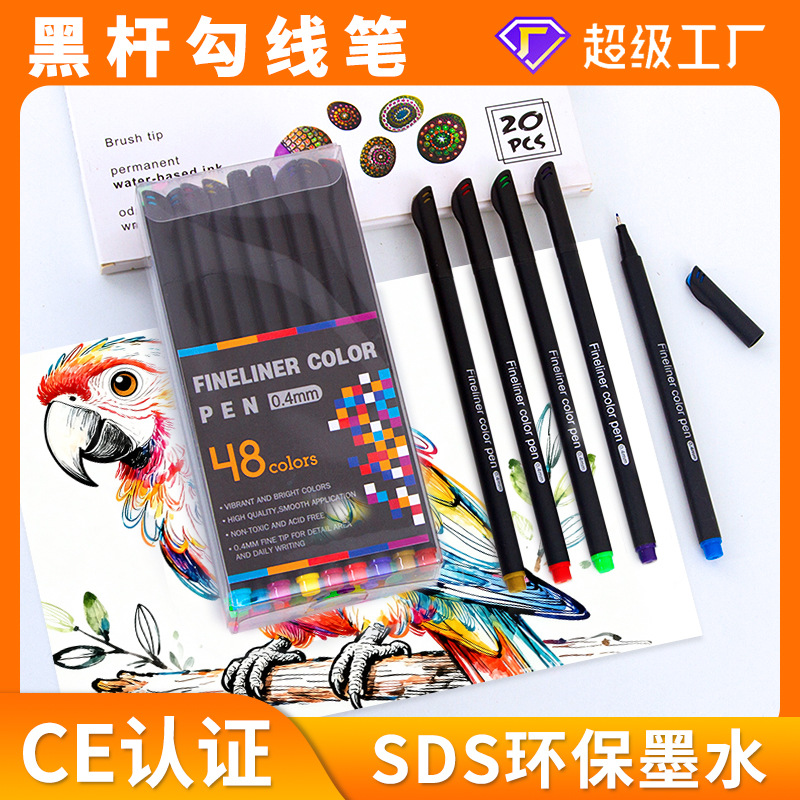 クロスボーダー現貨 カラーラインペン 学生用スケッチ画 速乾性 水性描画ペン 60色セット
