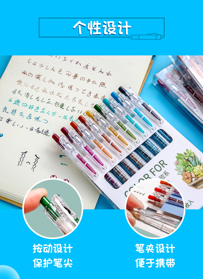 学生用サイドプレスゲルペンセット、カラープレスペン、文具メーカー、水性ペン、卸売、オフィス向け、シンプルで人気