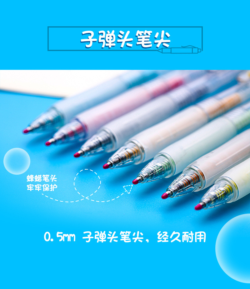 彩色按动中性笔ins高颜值学生做手账笔简约彩色水性笔彩绘标记笔