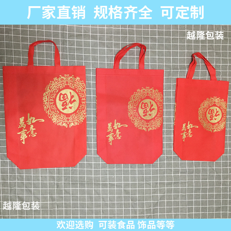 大赤色不織布ギフトバッグ福字おめでたい手提げ袋万事如意不織布袋現物