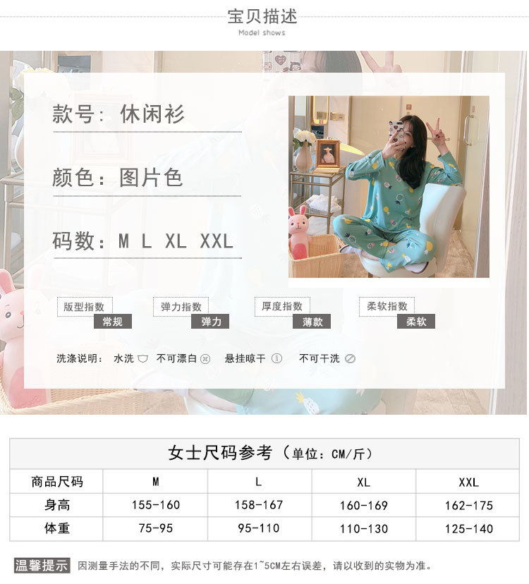 パジャマ女性秋長袖長ズボンゆるい漫画丸首女性パジャマ女性家庭服セット工場直販クロスボーダー