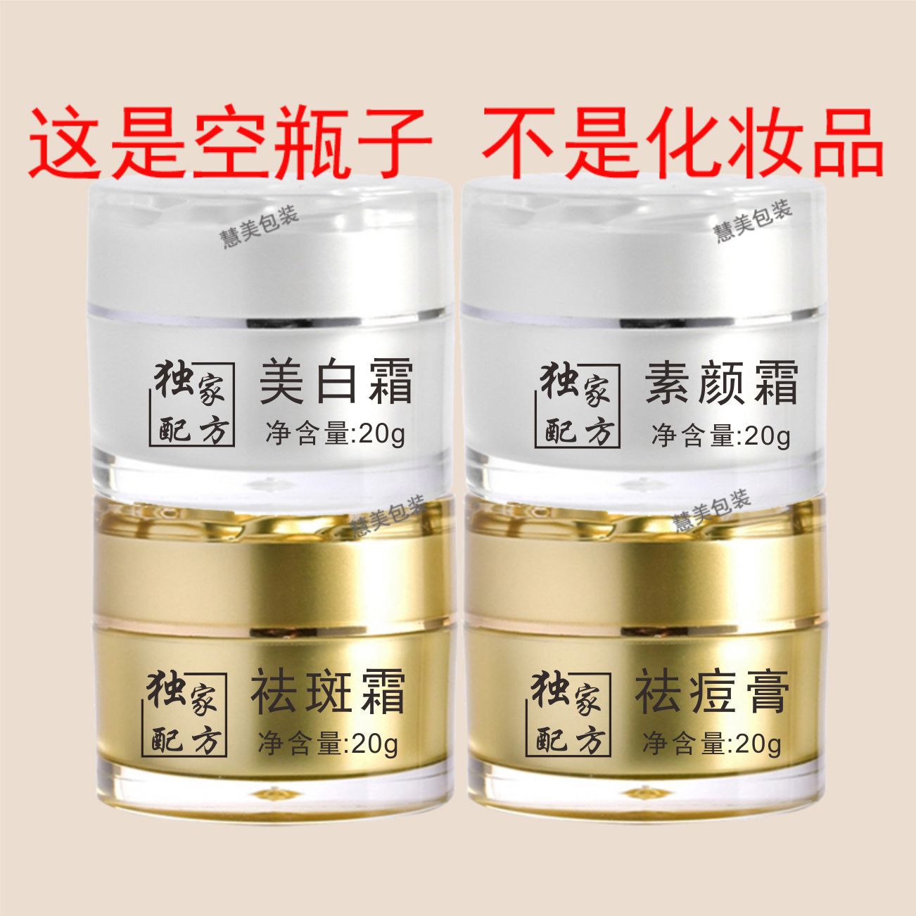 15克20克瓶子尺寸均为:直径53毫米。高41毫米。瓶身上印的克数均为20克。