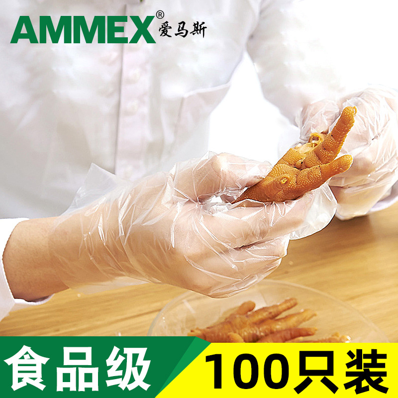 エマス使い捨てpe手袋フィルム手袋食品飲食ザリガニ手袋実験室透明卸売り