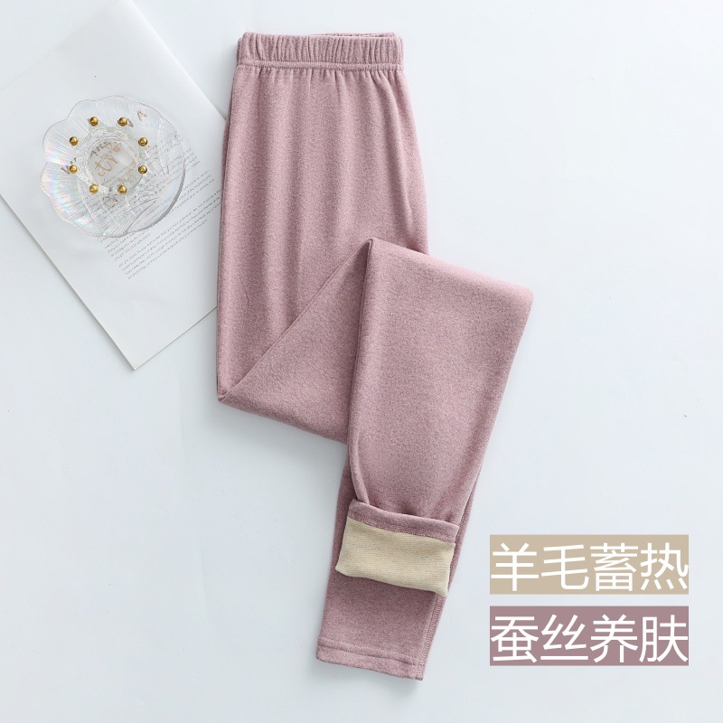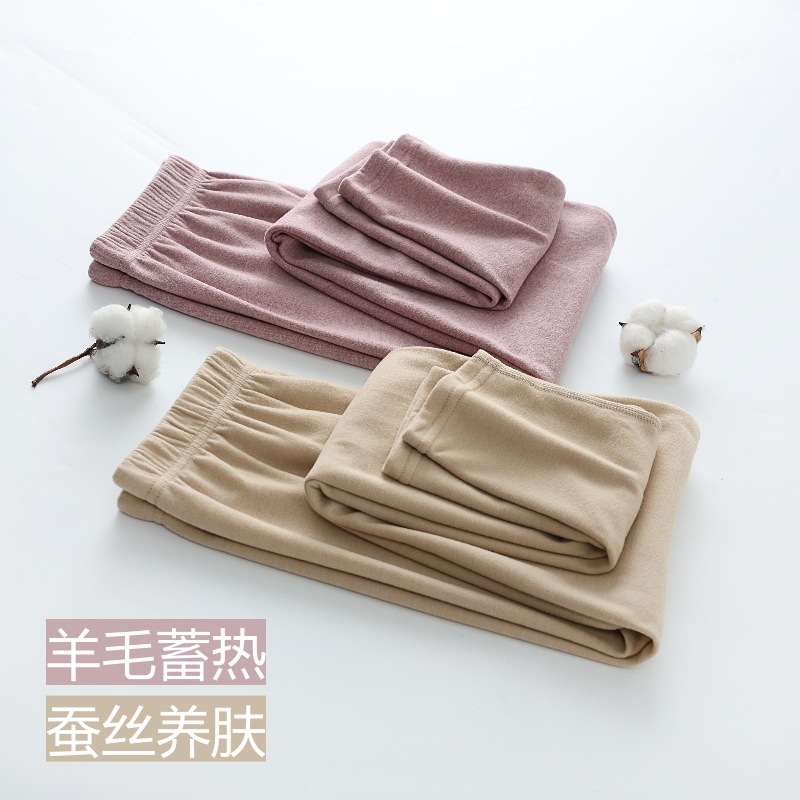 シングルパンツ【ウールシルク】秋冬レディース両面デルロン起毛保温秋用パンツ下着中厚加毛