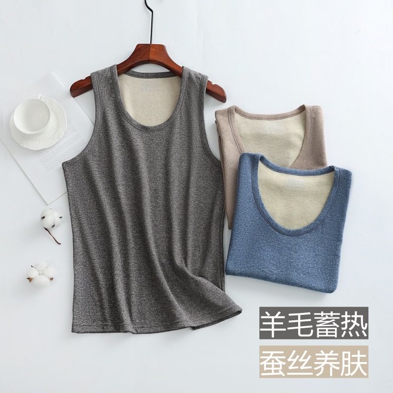 【羊毛蚕丝】男士保暖背心保暖上衣装内衣双面德绒中厚磨毛马甲