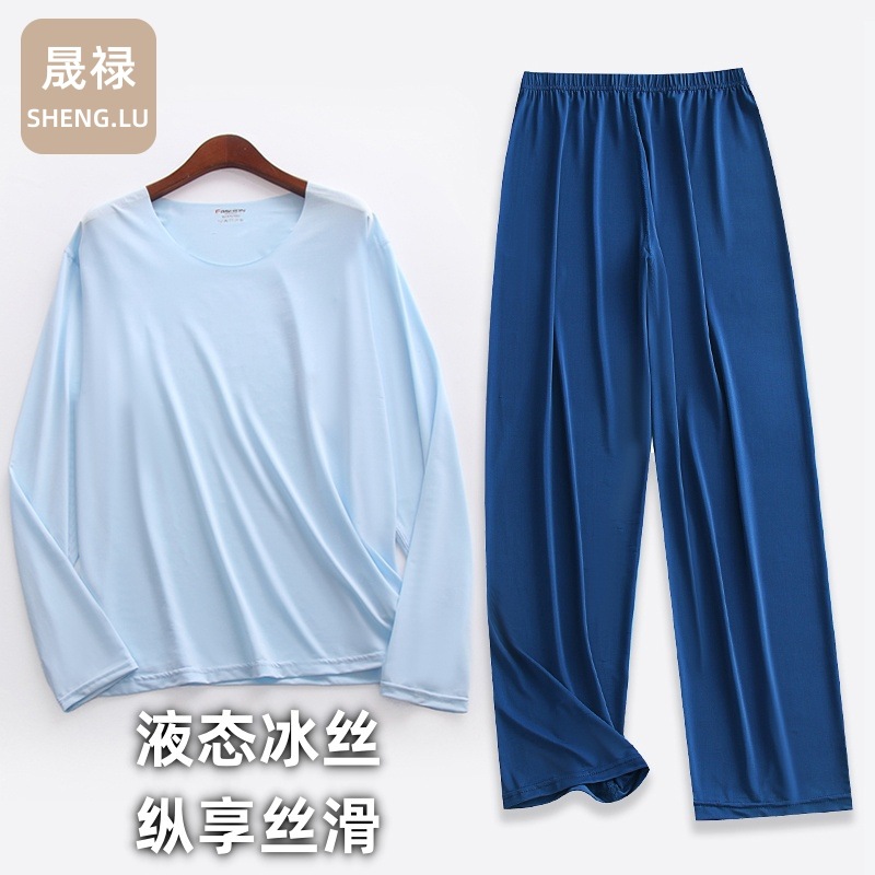 【液体氷糸】春夏超薄型メンズ長袖9分長ズボンパジャマセットホームウェア