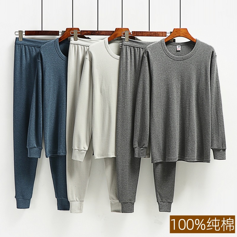 新型男性の中円襟綿秋衣セット保温下着の底付き綿セーターの薄い中襟男性メーカー直販