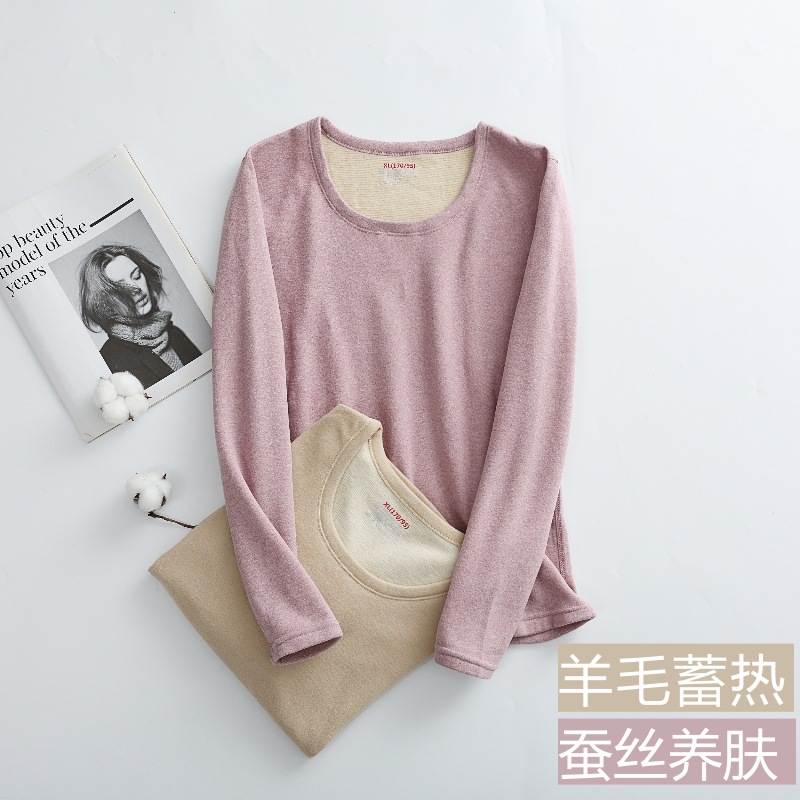 单上衣【羊毛蚕丝】秋冬女士保暖上衣装内衣双面德绒中厚磨毛上装