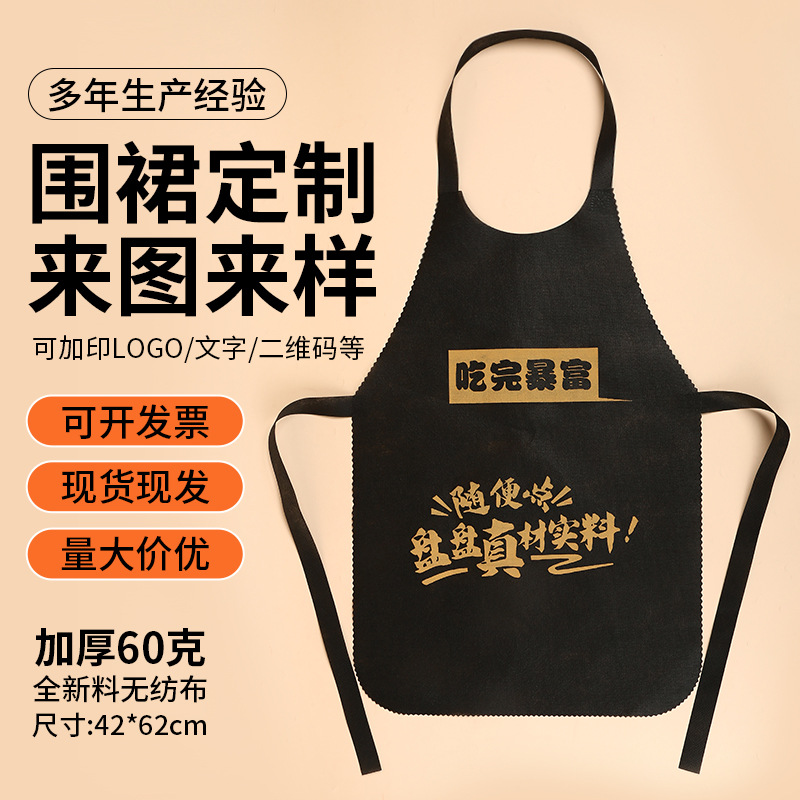 一次性围裙火锅店吃小龙虾餐饮客人成人专用兜无纺布定制logo印字