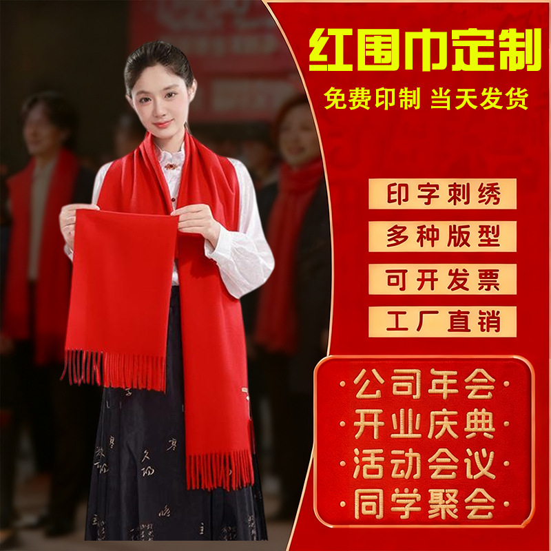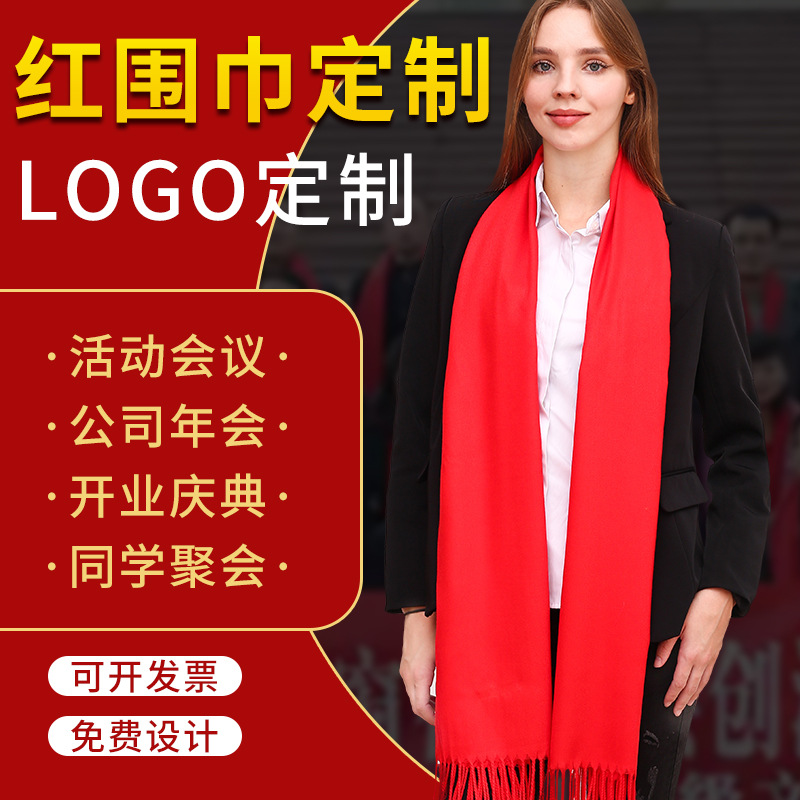 中国红年会开业典礼活动同学聚会红围巾定制印logo刺绣仿羊绒围脖