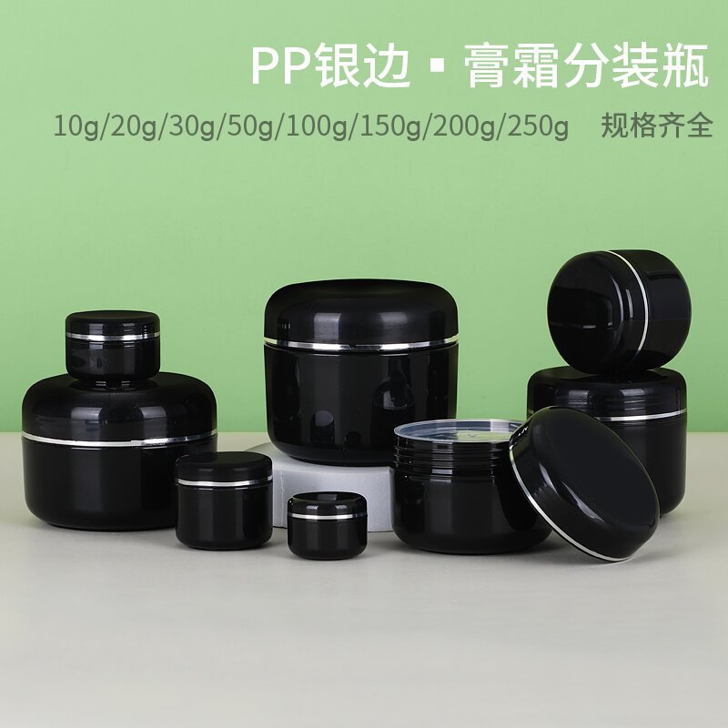 100グラムPP二重丸底膏瓶多規格金辺銀辺黒面霜瓶膏箱供給