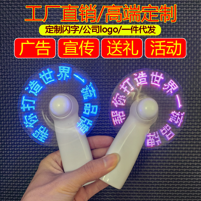 1)灯色:LED发光闪字风扇,带LED灯,可做各种不同颜色的灯色效果:红灯、黄灯、橙色灯、蓝灯、绿灯。