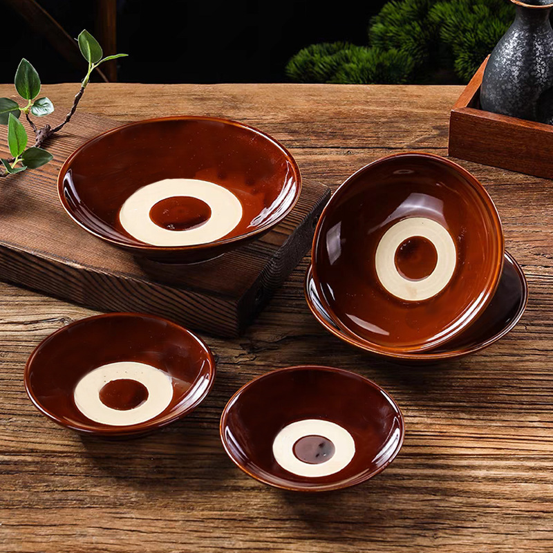 料理屋の小さいお酒の碗の旧式の全釉薬のおかずの碗の油の皿は肉の碗を引いて料理の碗を蒸します。