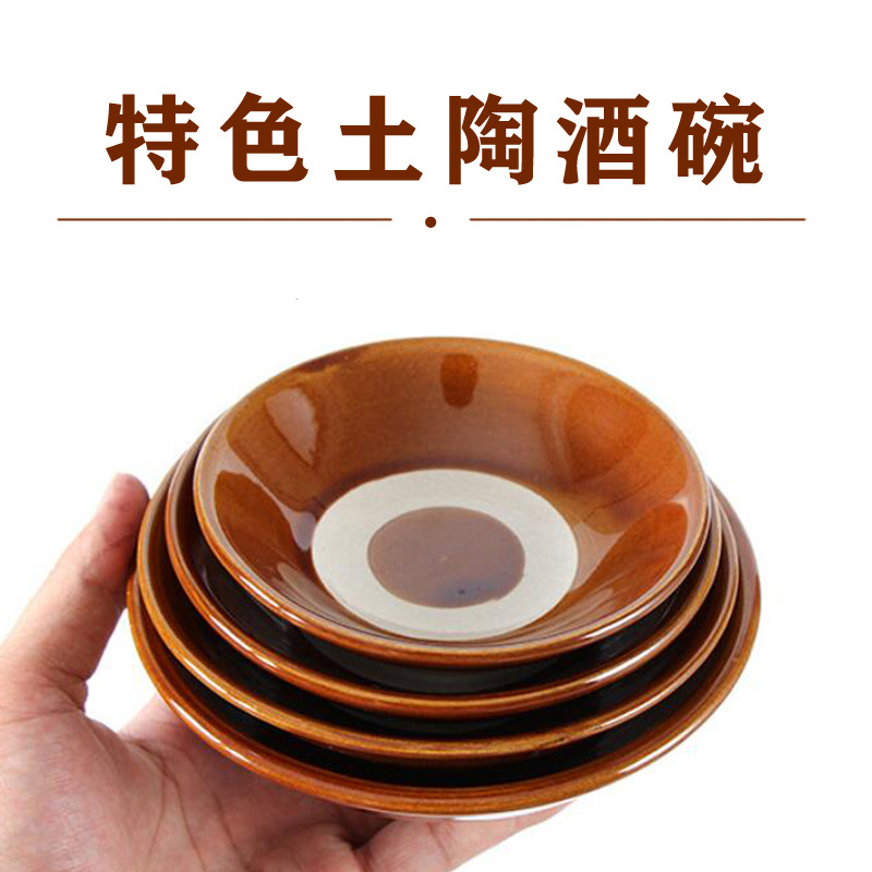 土陶茶色全釉薬酒碗の特色は家庭用商用蒸し物碗の農家の粗陶小酒碗に耐えられます。