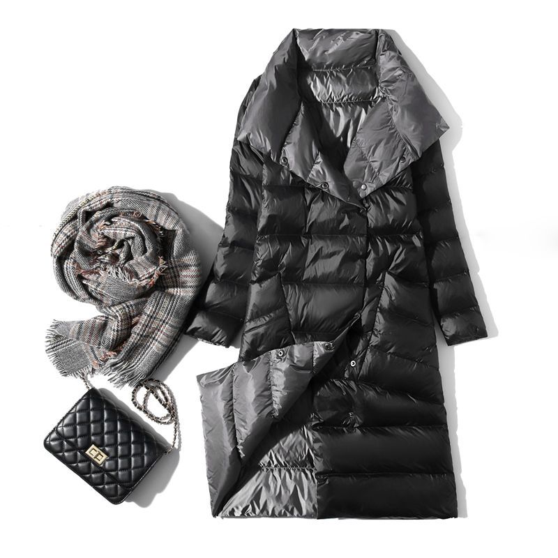 国境を越えた秋冬の軽薄な大襟ダウンジャケットの女性秋冬ファッションの中で、膝を越えた欧米の両面にコートを着る