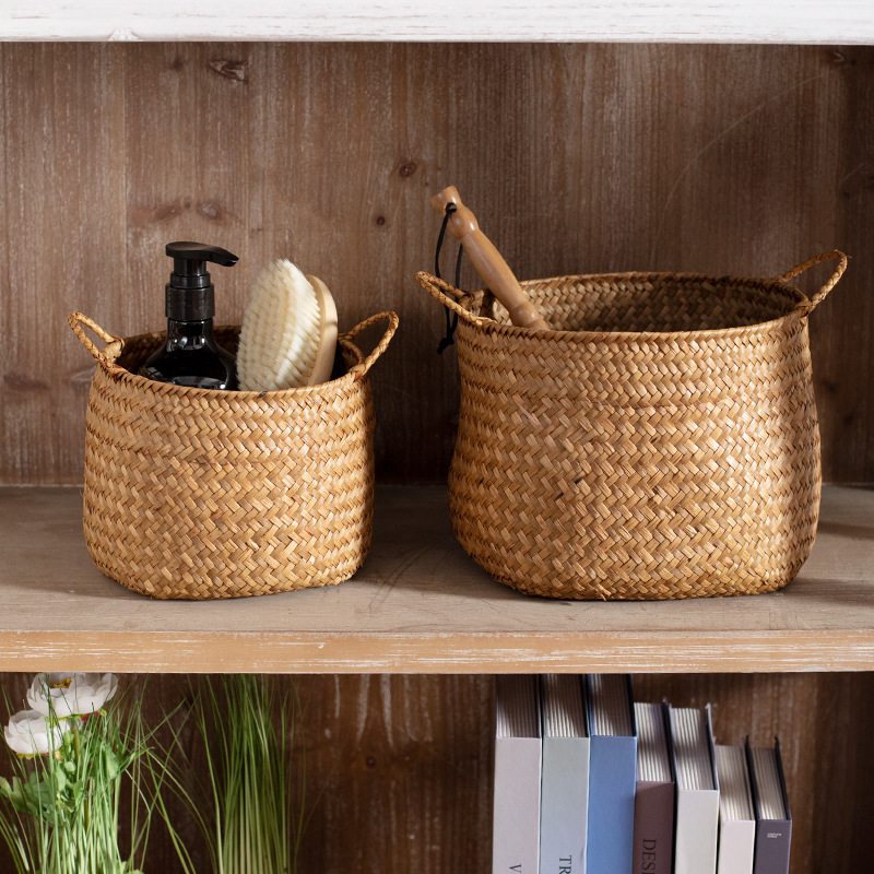 海草編みデスクトップ雑貨箱洗面スキンケア用品整理かご茶何リモコン鍵収納かご