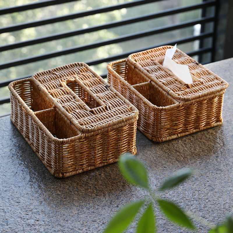 ティッシュボックス家庭用紙箱非わら模造籐リビングルームコーヒーテーブル多機能収納ボックスリモコン収納クリエイティブ