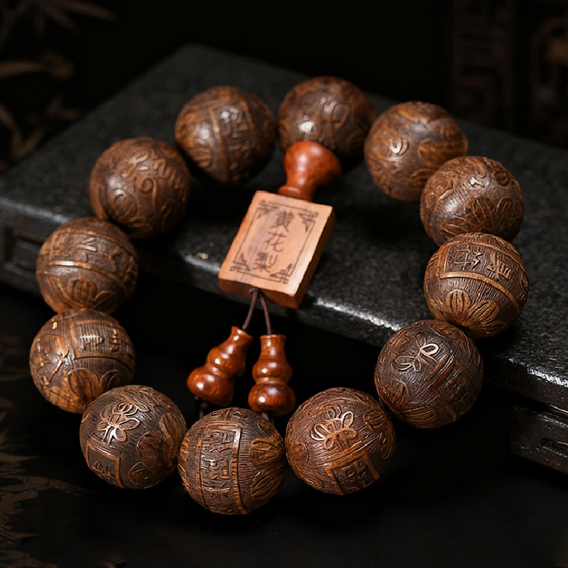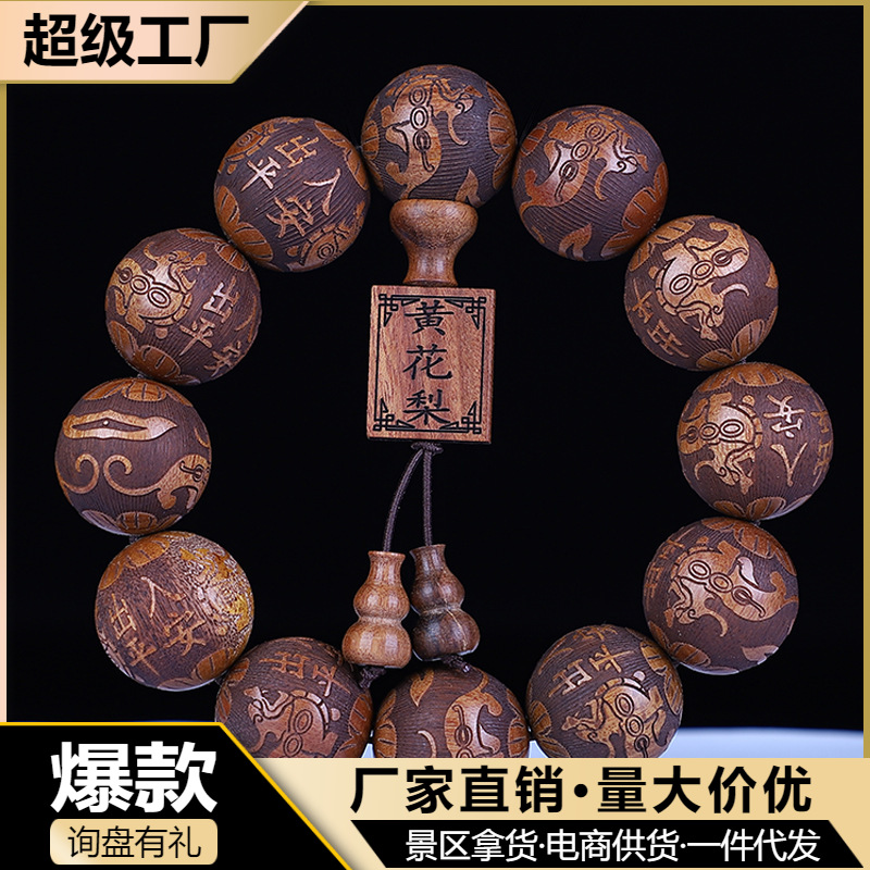 吉方円大葉黄花梨精雕2.0手串民族風仏珠文游ブレスレット卸売り男女モデルアクセサリー