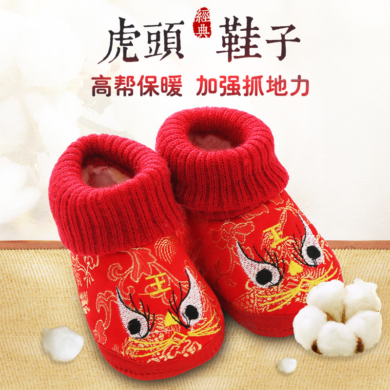 赤ちゃんの歳は周の虎の頭の靴をつかんで、赤ちゃんの学歩の靴の新生児の布の靴の滑り止めの靴の赤い虎の靴の冬の靴