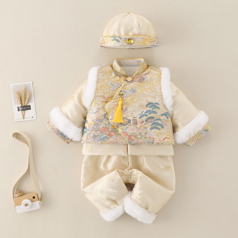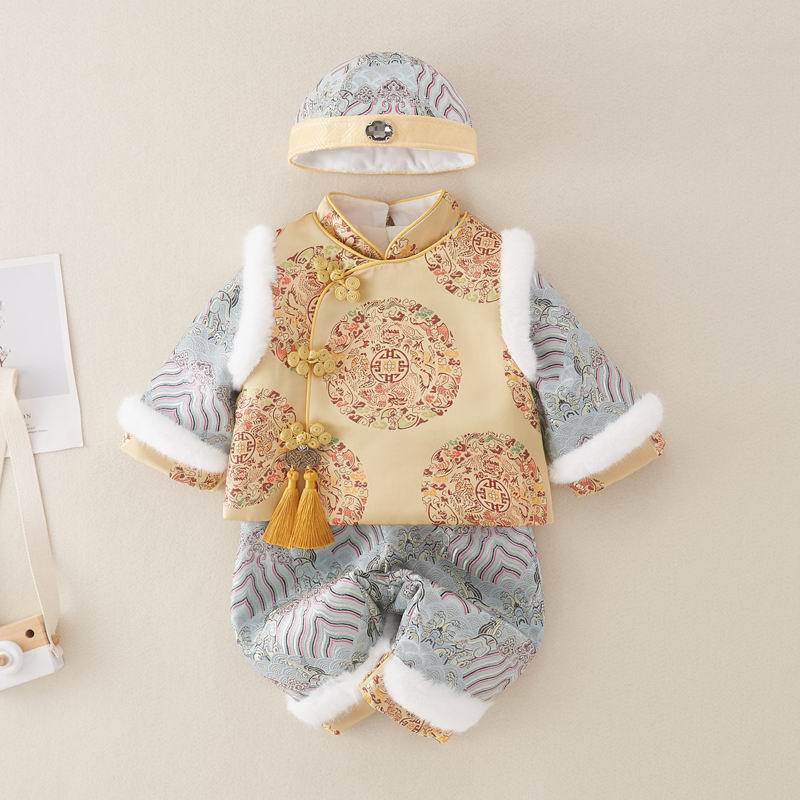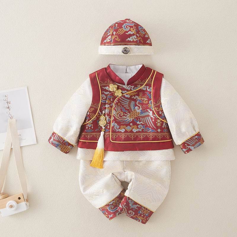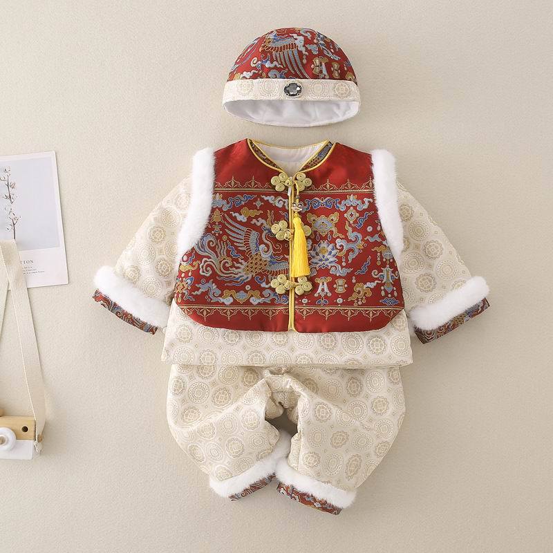赤ちゃんは満1歳で周唐装赤ちゃん百日百歳新年中国式ドレス子供は冬服を厚くして漢服を着ている