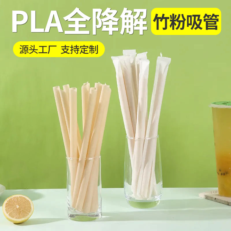 国境を越えた竹繊維プラスチックフリー環境に優しい完全分解性使い捨てストロー個別包装コーヒー レモン ティー竹粉末ストレート チューブ