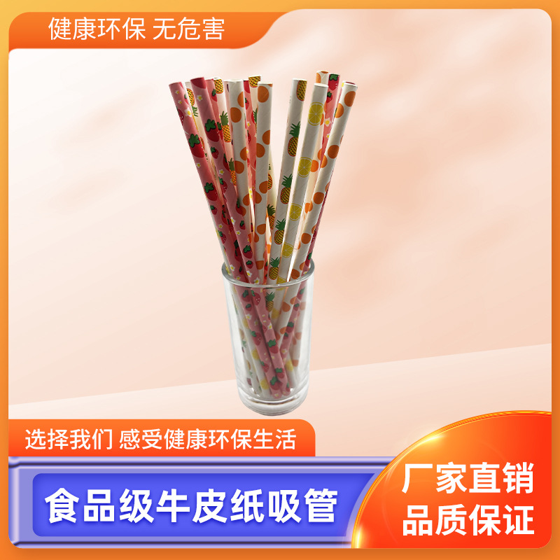 紙ストロー使い捨て紙ストロー果物パイナップルレモンスイカミックスジュース飲料食品紙ストローtemu