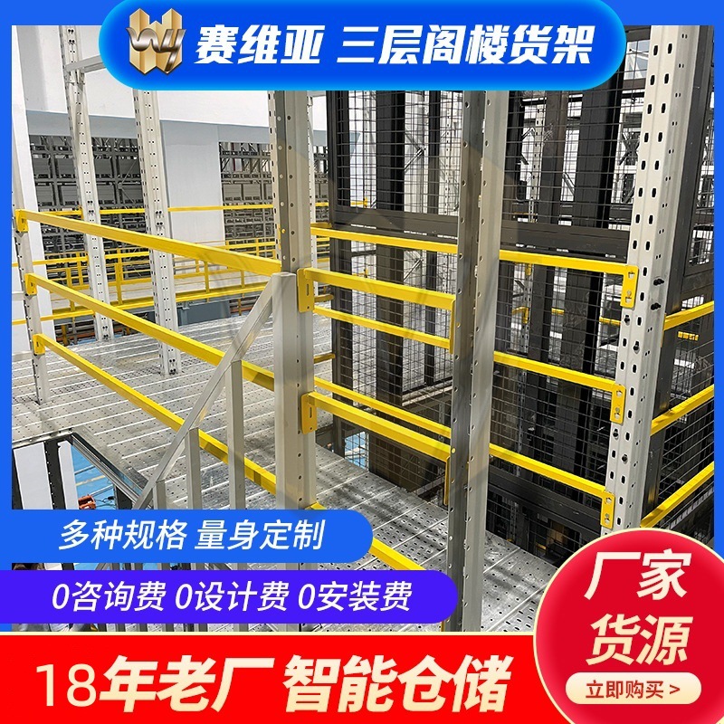 工場用三層ロフト棚 セビア棚 重量級スチール構造 分解可能なプラットフォーム三層ロフト
