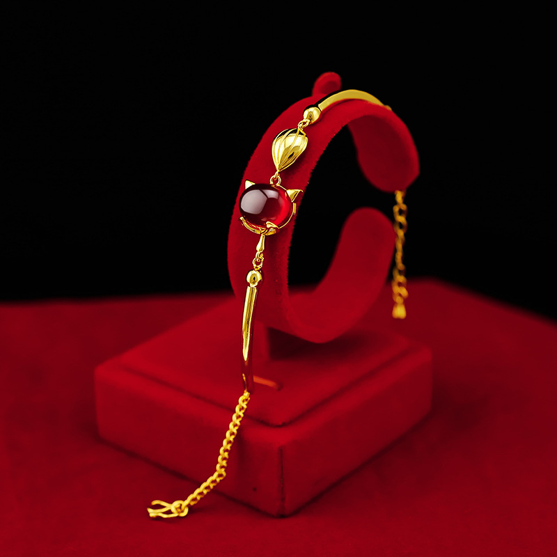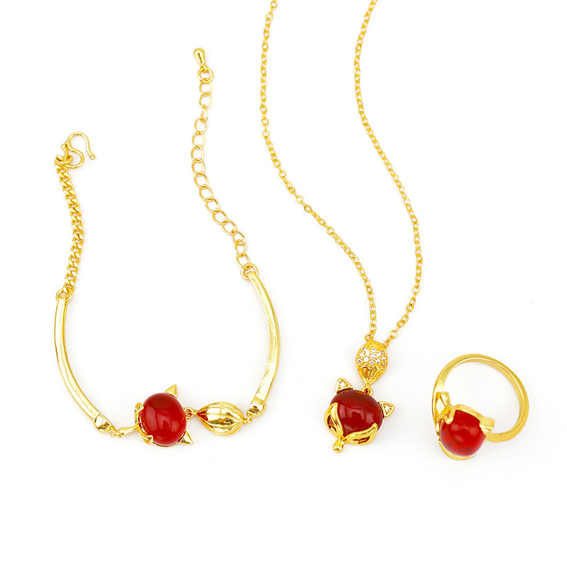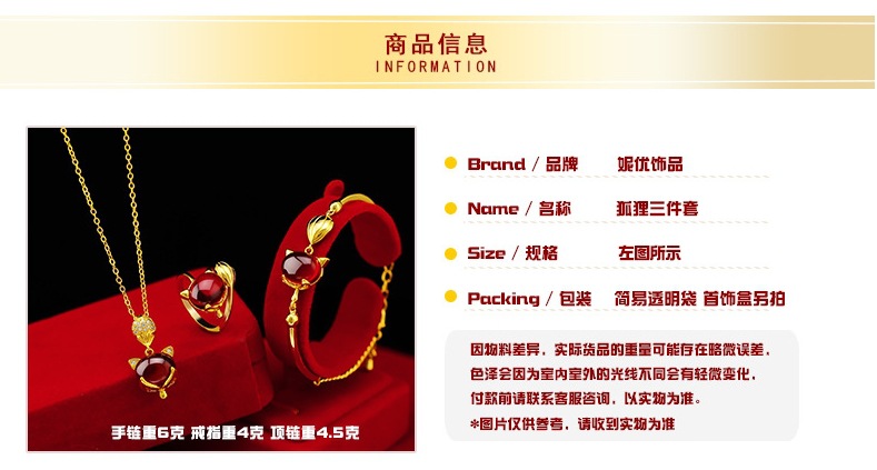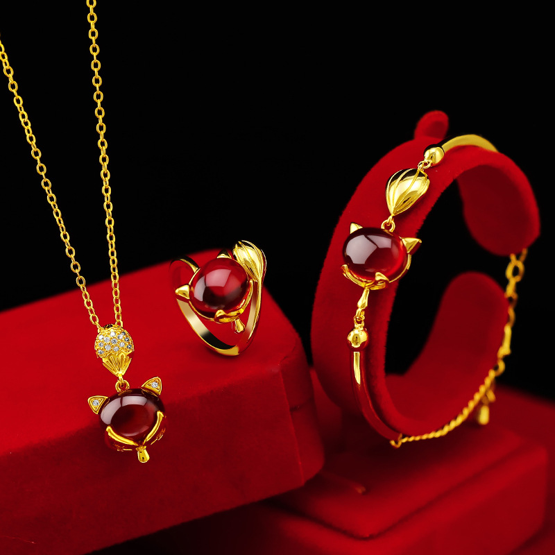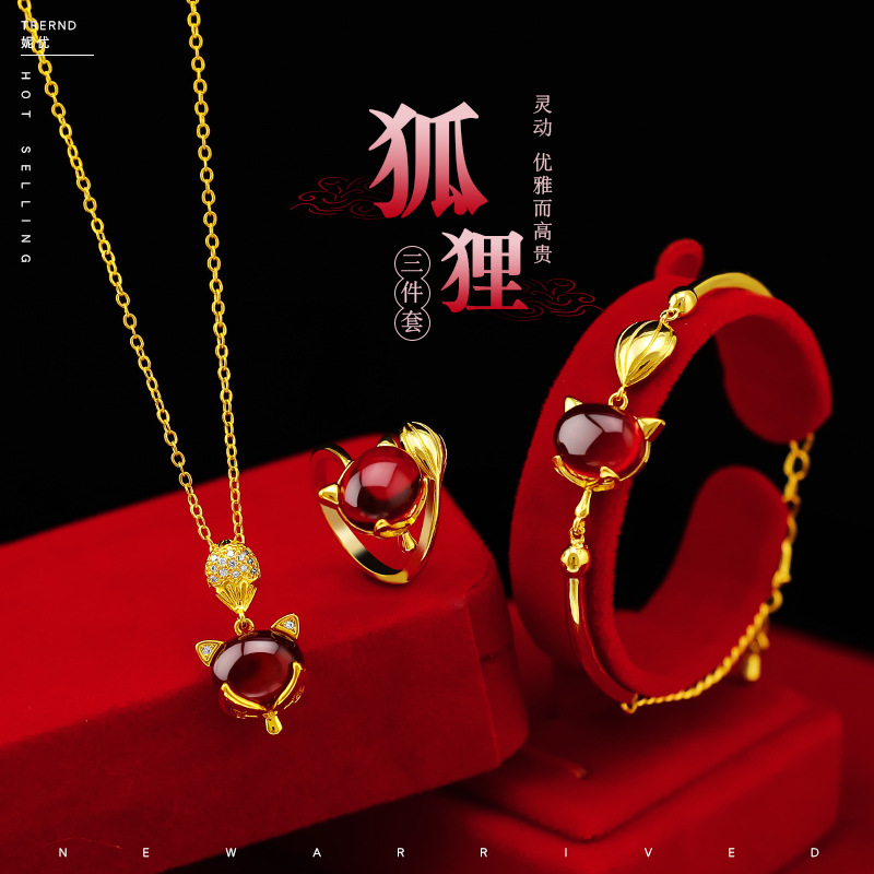 ベトナム沙金女金紅狐ネックレスブレスレット指輪三点セット生放送金日韓ファッション狐指輪