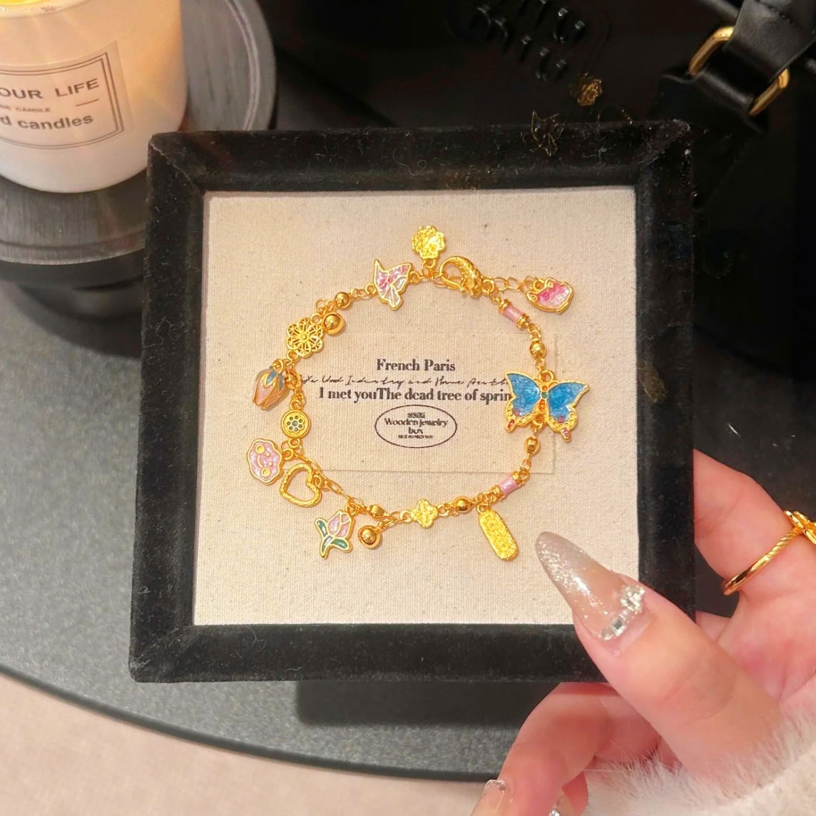 2025新款镀金色珐琅彩宝相花葫芦手链国风设计感平安喜乐葫芦手饰