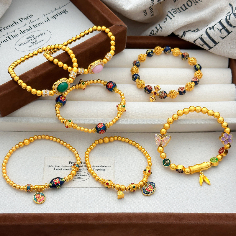 新中式国风DIY手工珐琅彩烧蓝串珠手串转运珠蝴蝶平安锁金店手链