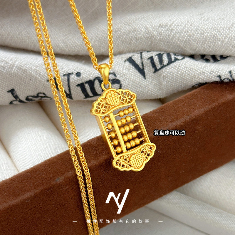 国风仿金新中式古法金久不掉色可波动小巧铜钱福字算盘吊坠女项链