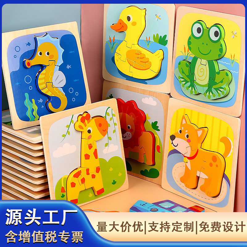 人気玩具木製児童漫画立体パズル訓練集中力早教積み木動物ペアパズル3d