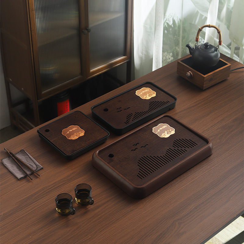 メーカーバッチ竹製茶台簡易胡桃色茶味人生貯水式茶皿日本式水切り小茶台茶海