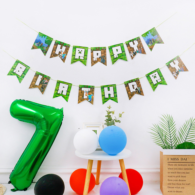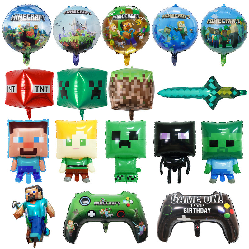 漫画ゲーム Minecraft ピクセル少年アルミフィルムバルーンセット子供の誕生日パーティーセット