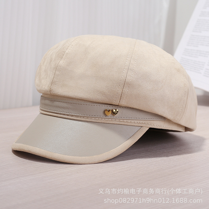 韩国爱心标八角帽女新款英伦复古百搭画家帽春秋显脸小休闲鸭舌帽
