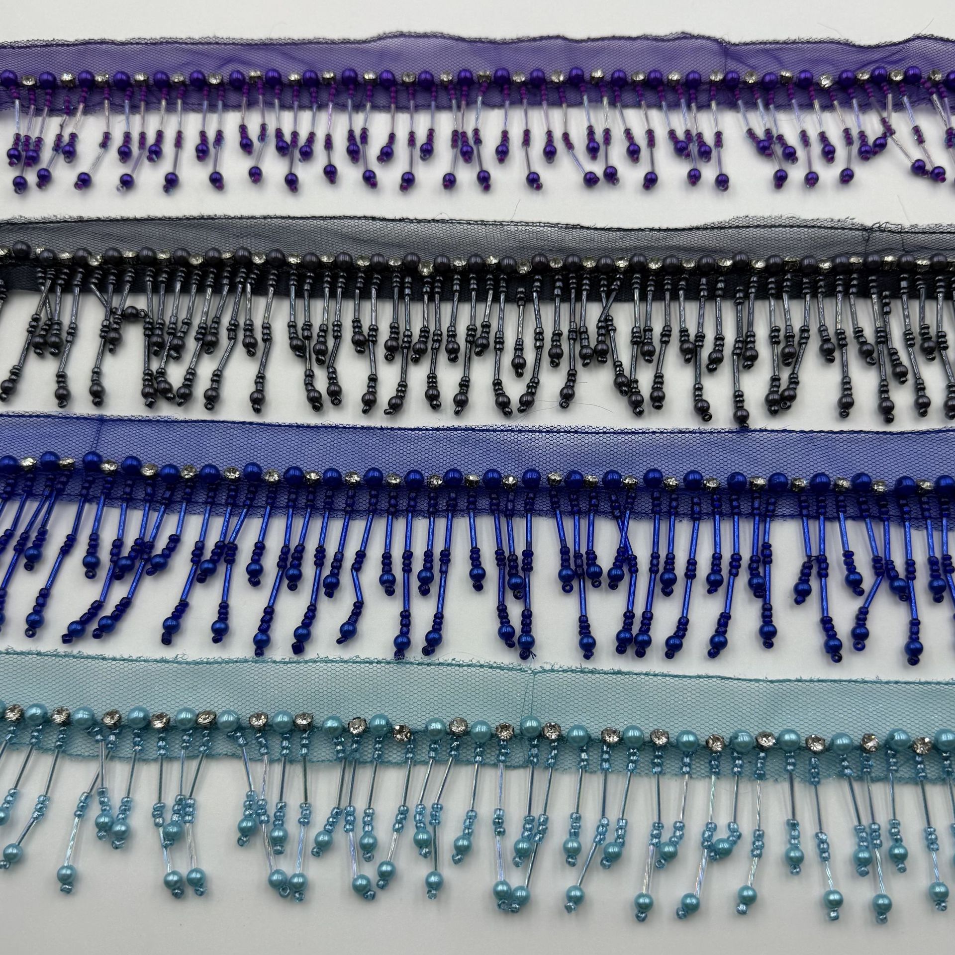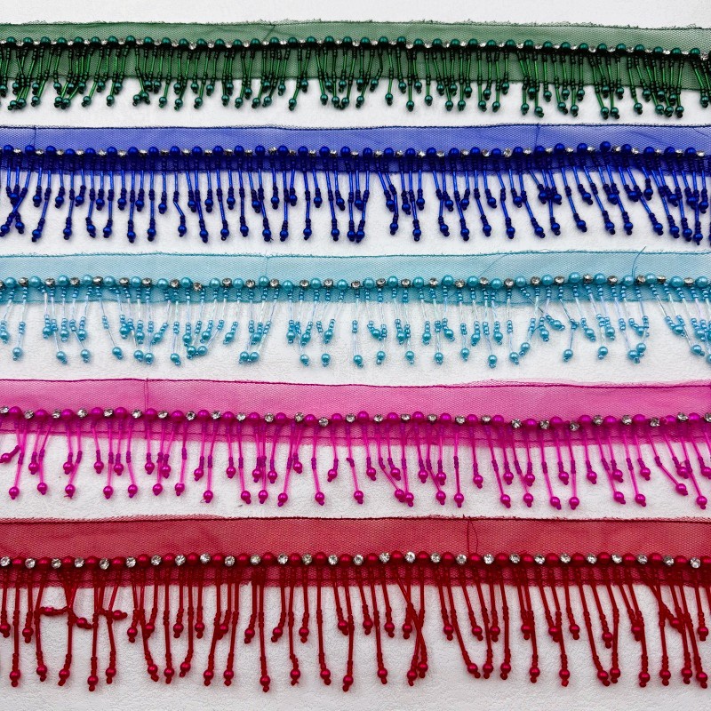 5CM幅メッシュボトムロング&ショートハンギングビーズタッセルビーズメッシュボトムレース
