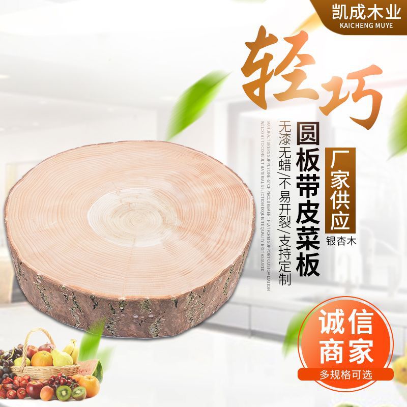 新製品イチョウ材まな板、丸型厚みのある家庭用および業務用まな板、皮なし