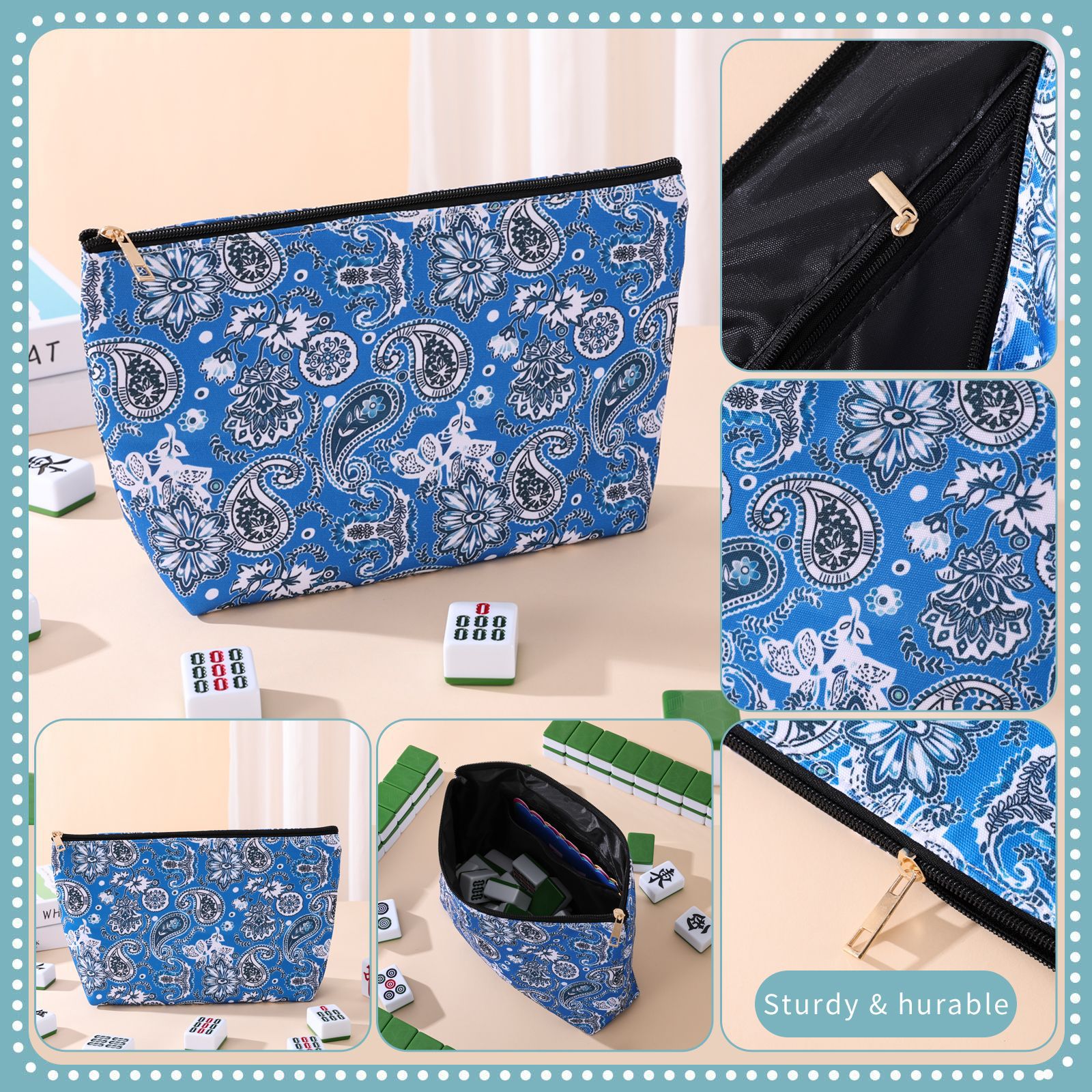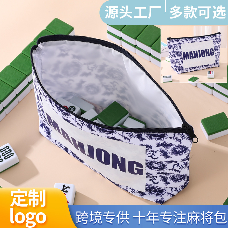 亚马逊跨境新款青花麻将袋大容量化妆收纳包防水旅行洗漱包便携