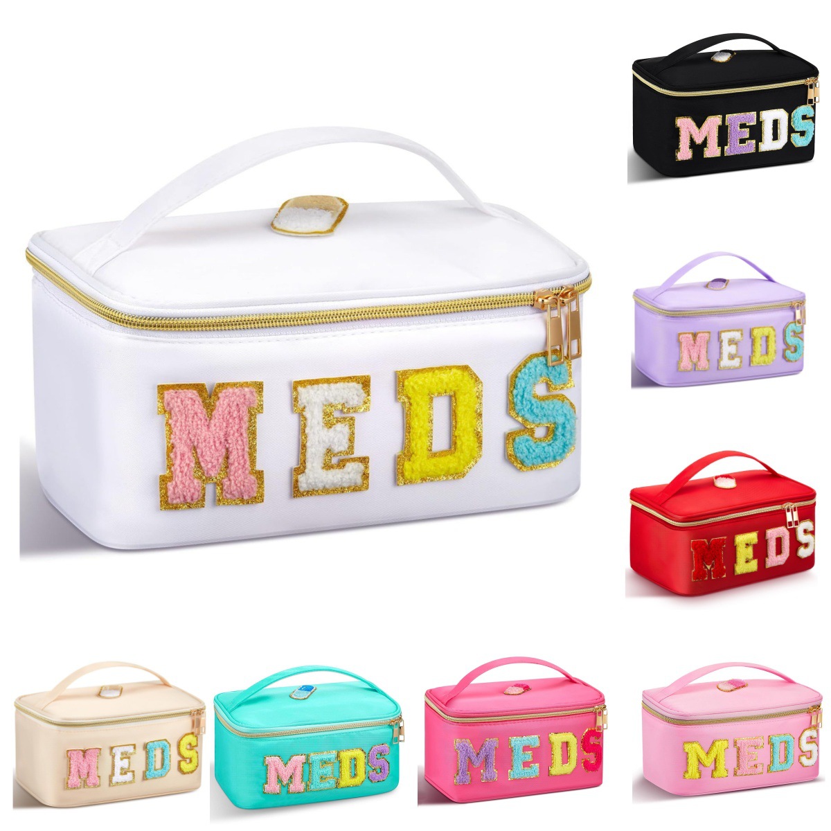 跨境亚马逊新款毛巾绣字母药箱大容量旅行急救箱便捷药品收纳箱包
