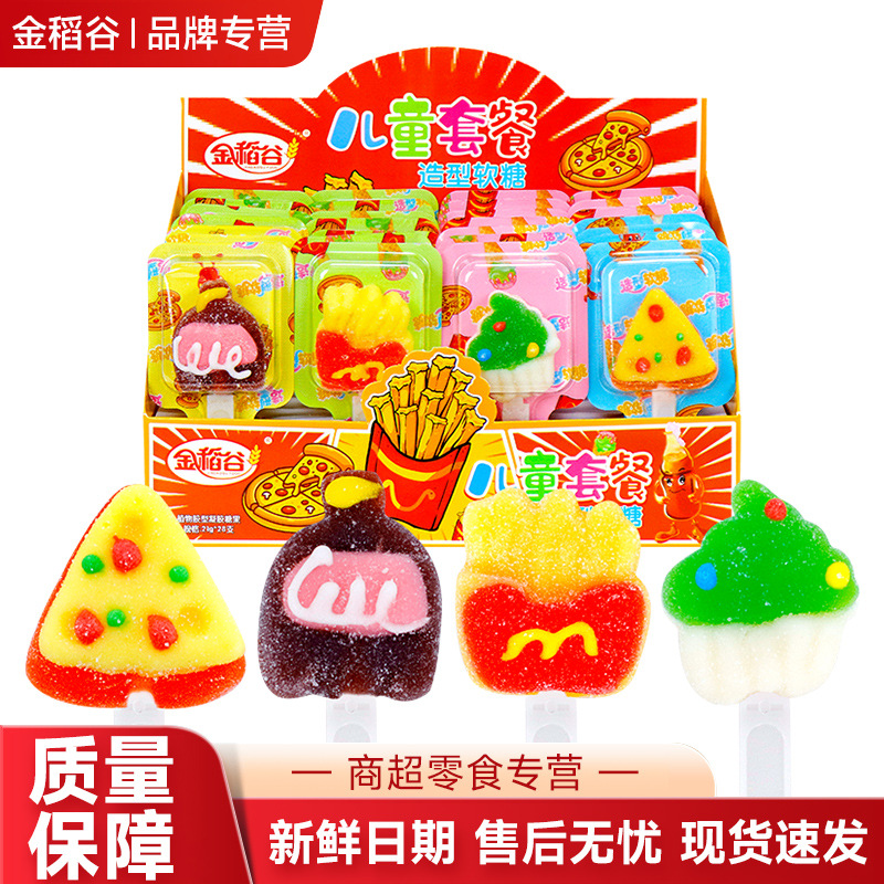 ゴールデンライス新製品 21 グラム子供用パッケージグミフライドポテトピザ形状ロリポップスナック箱入りキャンディー卸売