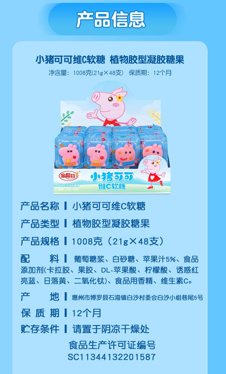 金稲谷21グラムのアニメの形のブタのグミの幼稚園の児童の間食の箱の中のキャンディーのスーパーは卸売りします。