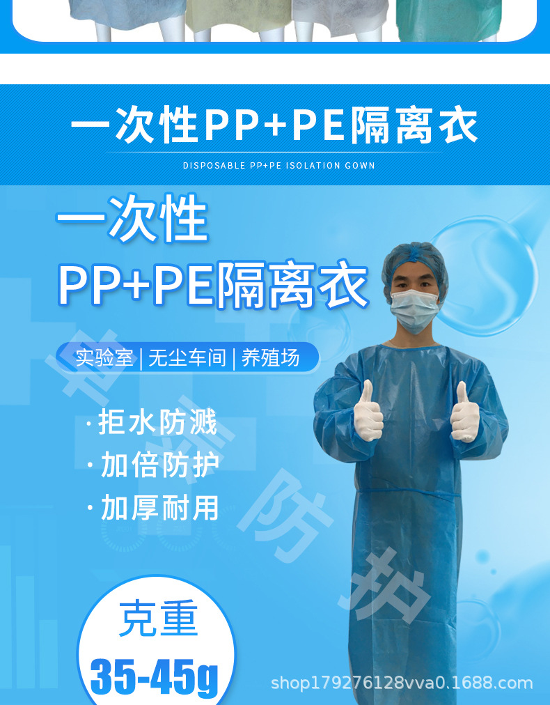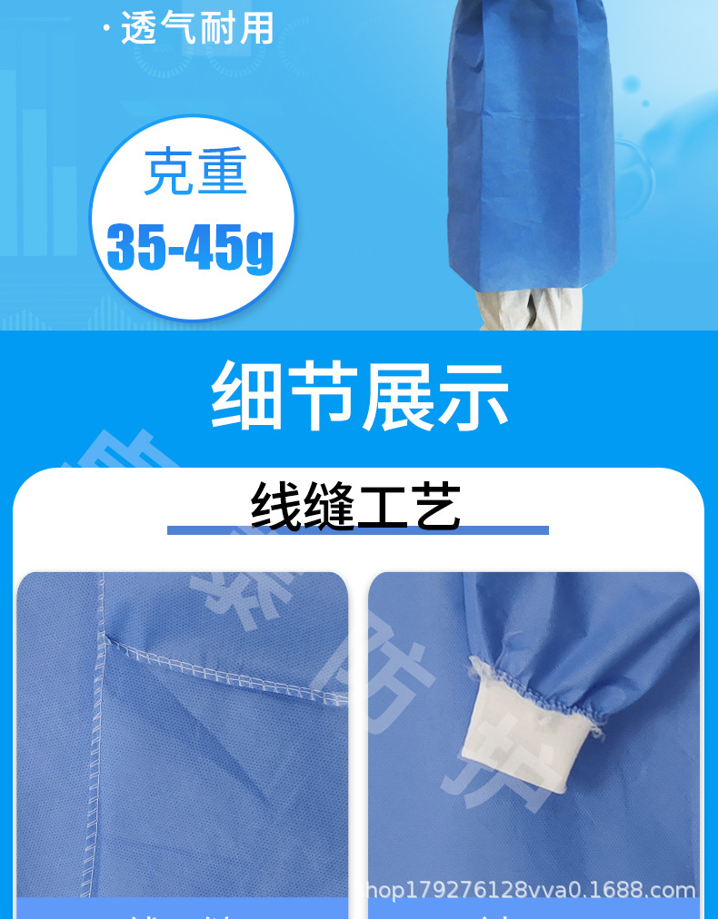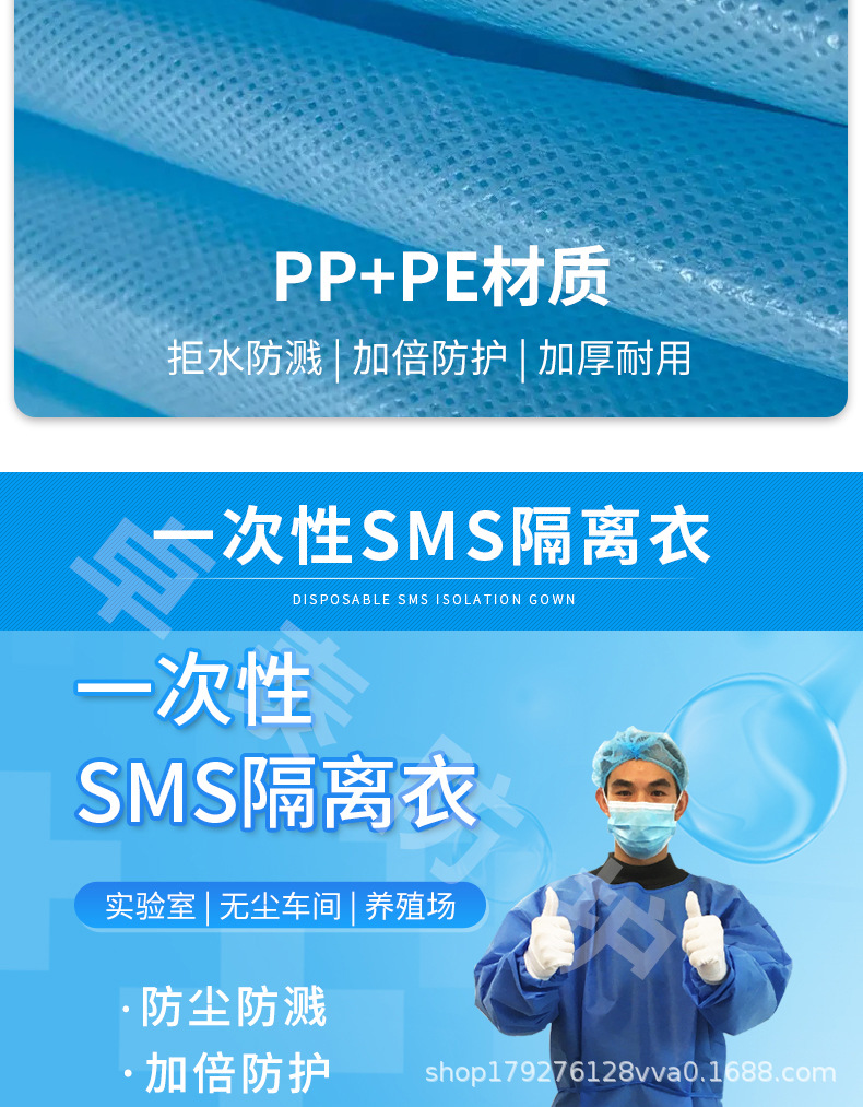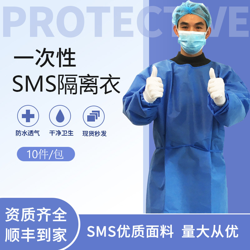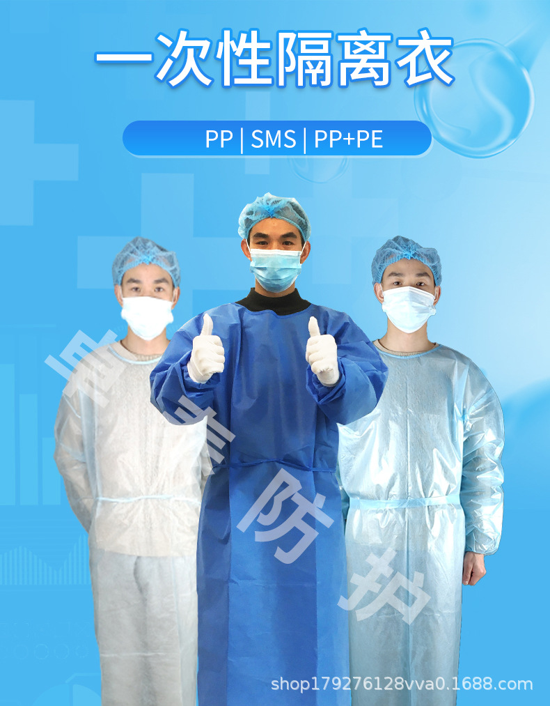 一次性隔离衣反穿式防护服sms,PP防水防尘隔离服透气无纺布隔离