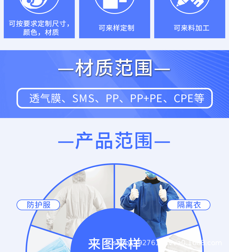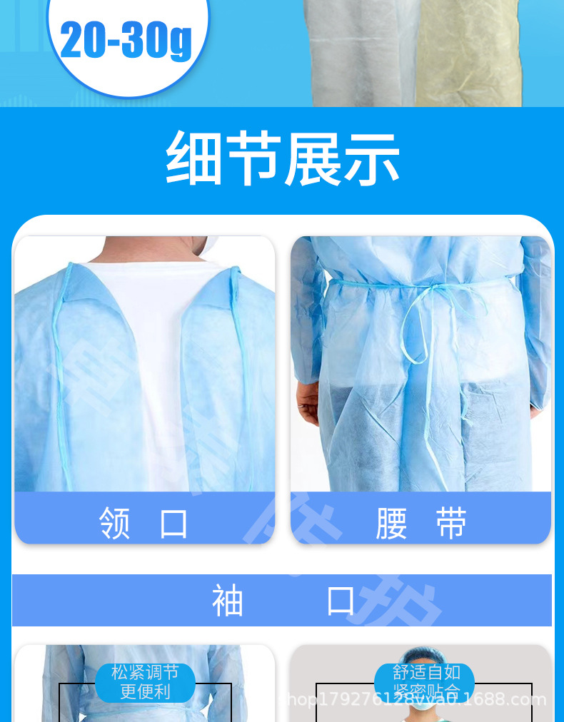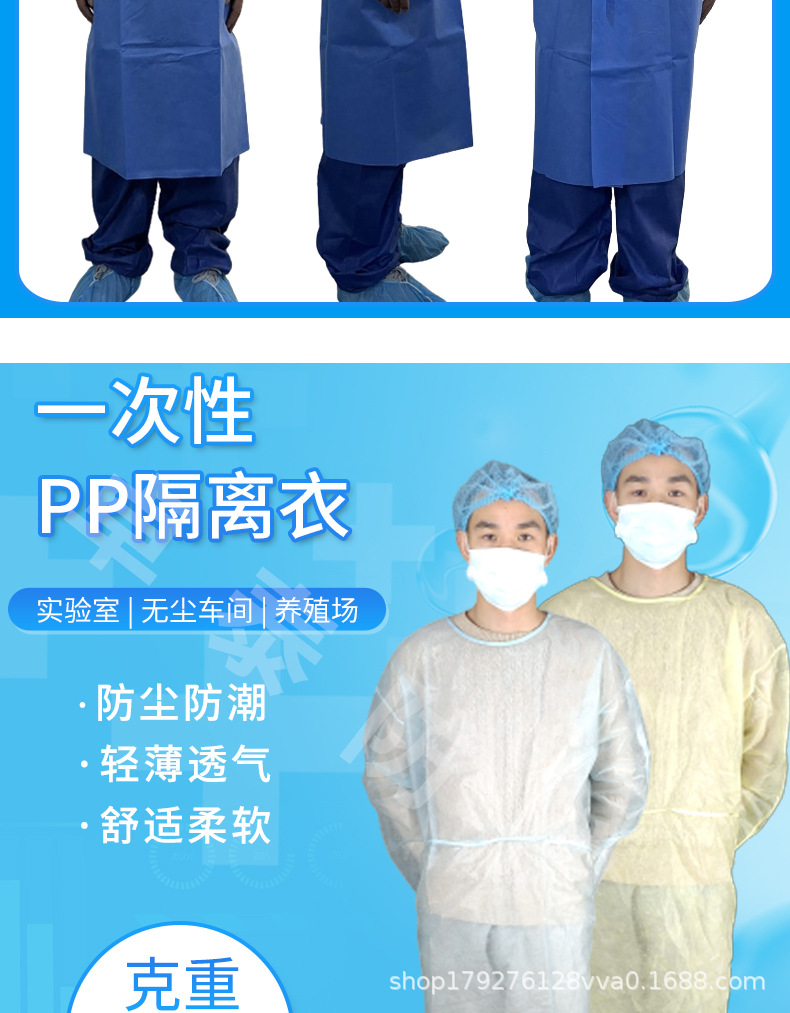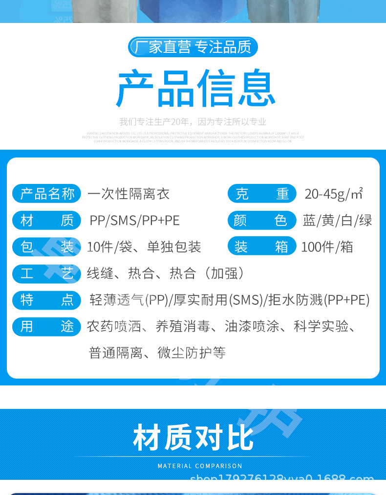 一次性隔离衣反穿式防护服sms,PP防水防尘隔离服透气无纺布隔离
