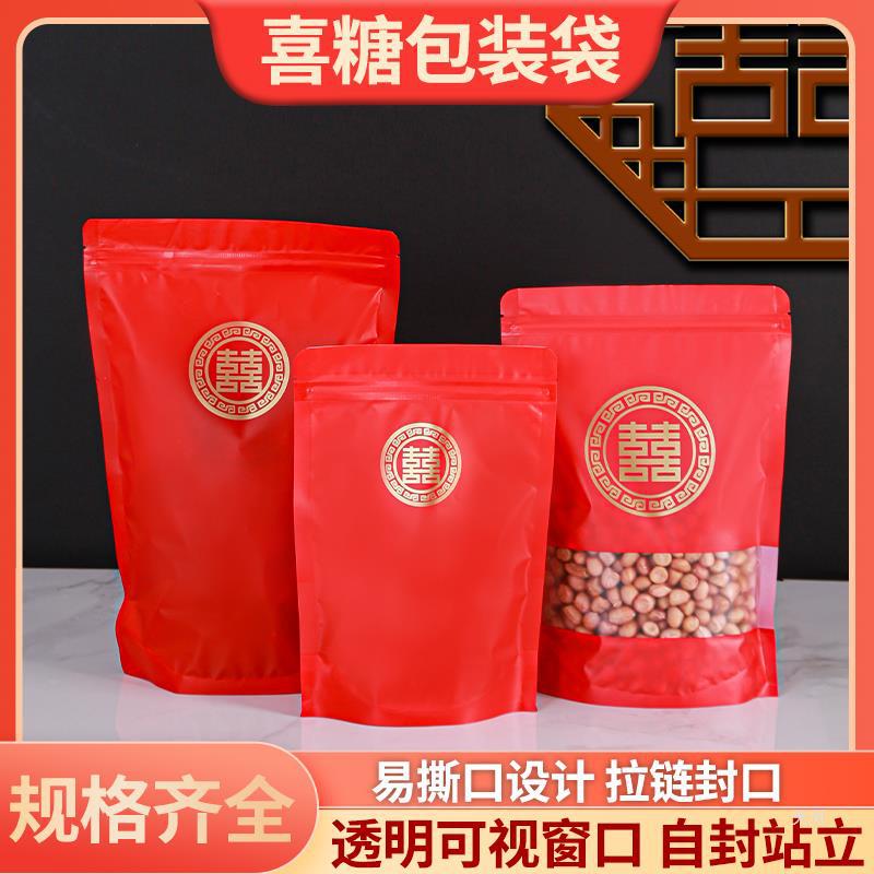 现货喜糖包装袋自立加厚密封袋子一斤结婚糖果红色婚庆礼品自封袋