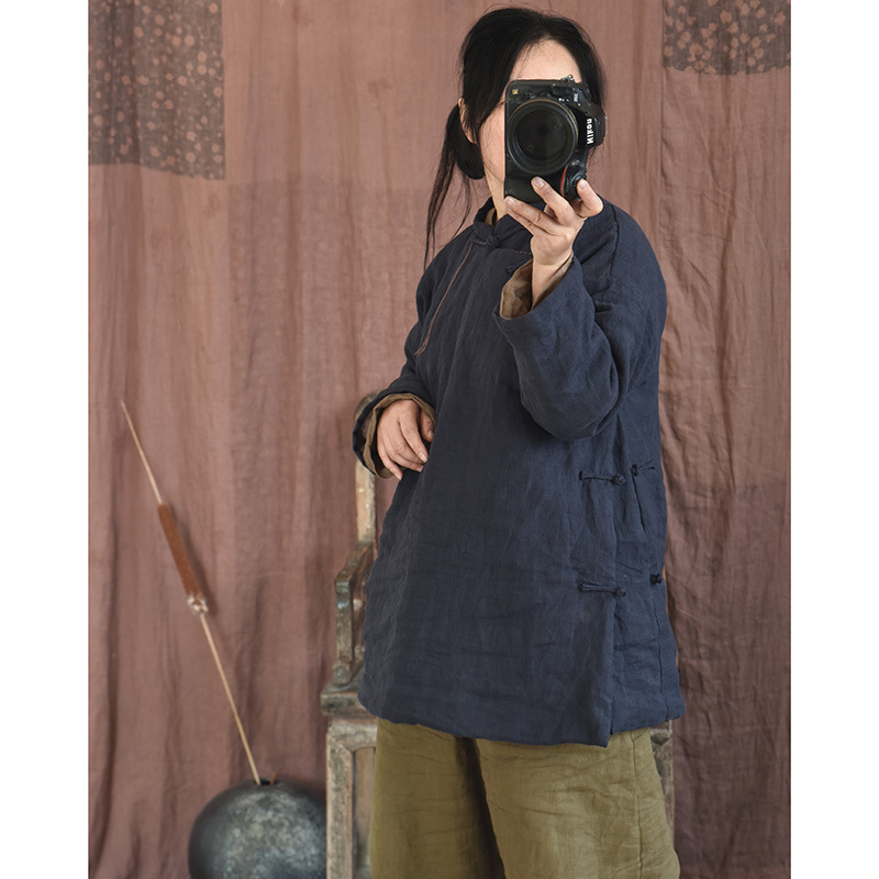 领口和斜襟滚边 口袋手工针迹绣线 全棉里面 羽绒棉填充