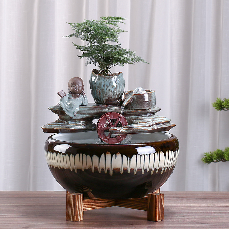 流水置物循環水噴水創意陶磁器客間生財招財事務室デスクトップ微景観装飾品